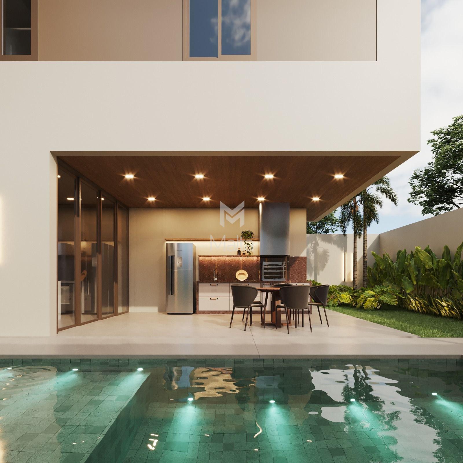 Fachada moderna e imponente 04 SUÍTES Banheiro social Sala e copa com pé direito duplo Cozinha integrada Área de serviço independente Área gourmet Lavabo Piscina, prainha Fotovoltaica de 800 KW, Boiler solar Automação de iluminação, piscina e jardins Paisagismo Acabamento de altíssimo padrão
