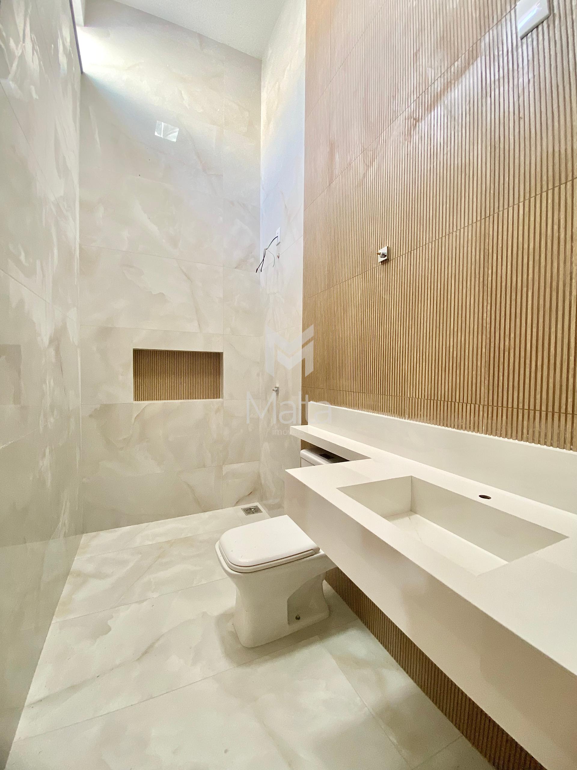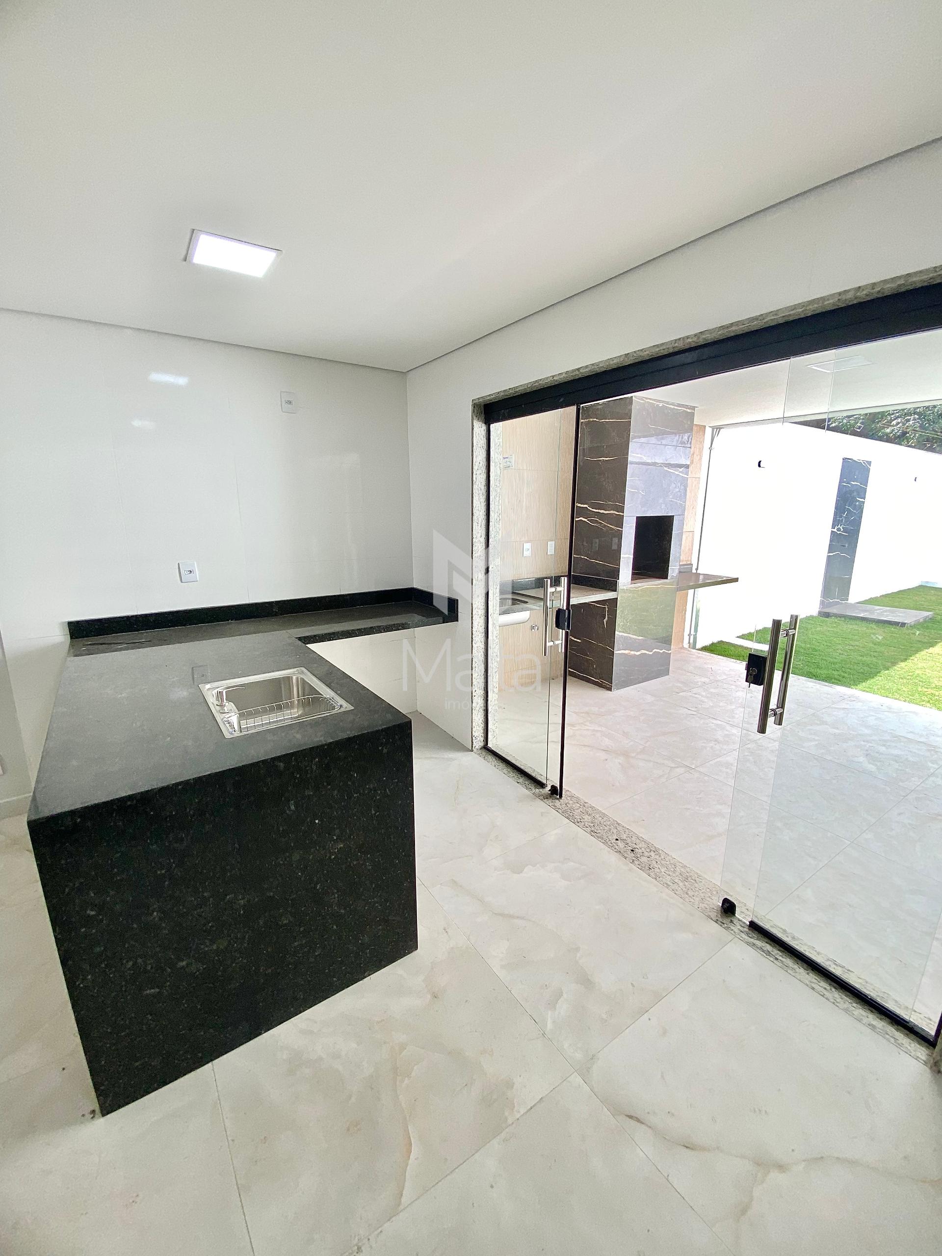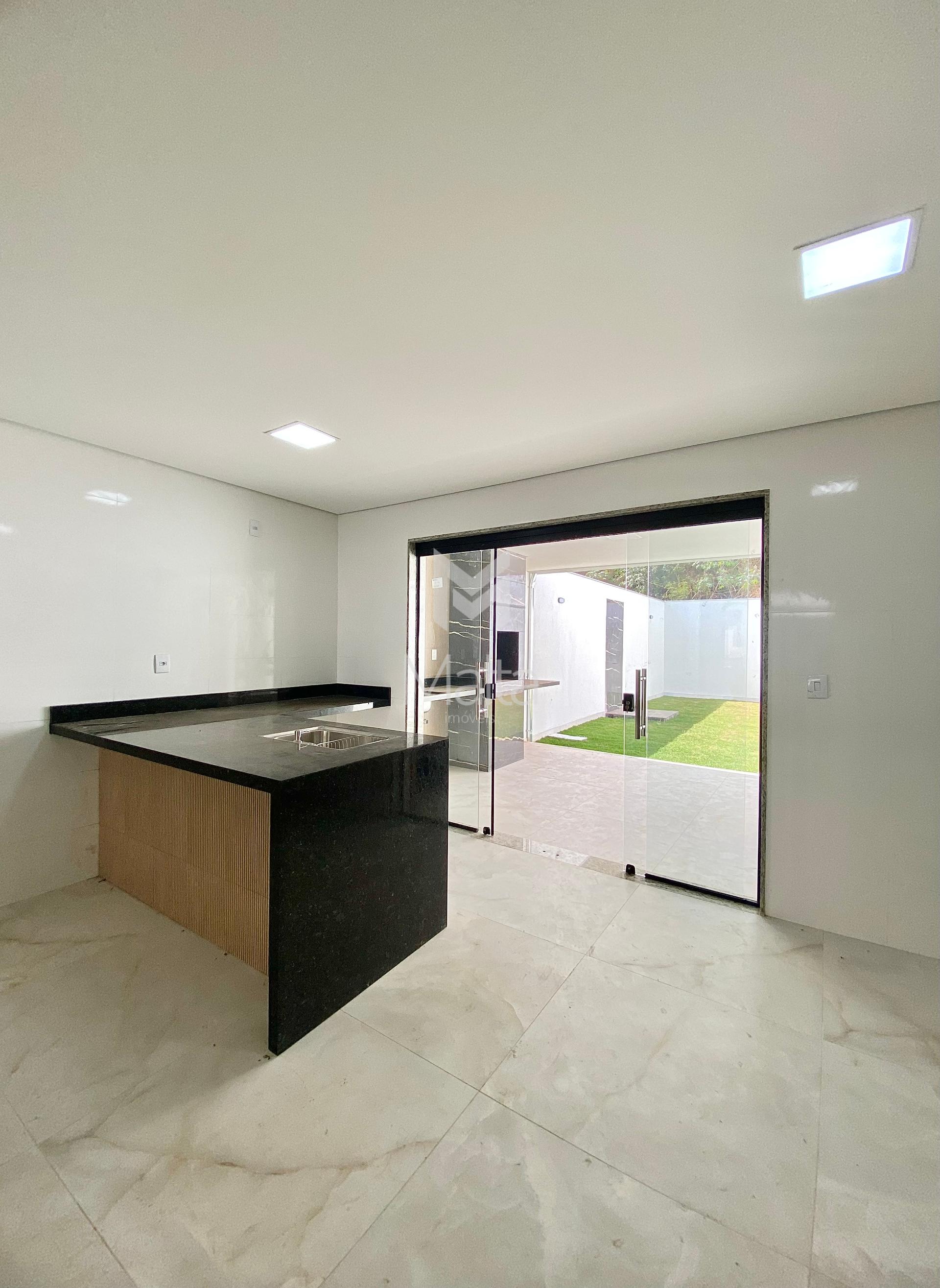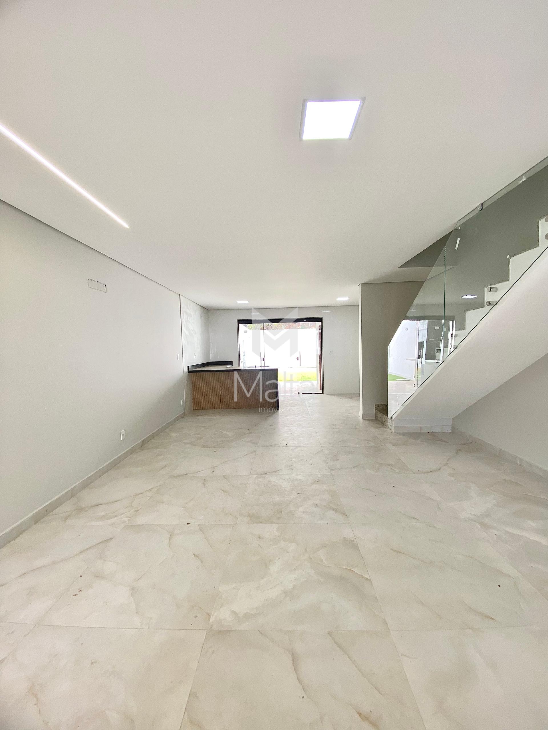 Faixada imponente e moderna. Fundos para área verde Aproximadamente 140m. Ambientes integrados. Infraestrutura para ar condicionado em todos os quartos 3 quartos amplos sendo uma suíte. Piso no porcelanato. Churrasqueira a carvão revestida no porcelanato Ambientes integrados Área gourmet com quintal amplo 2 vagas de garagem cobertas. Portão eletrônico